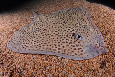 Raja undulata è un pesce ovipare qui pond sur substrat découvert.